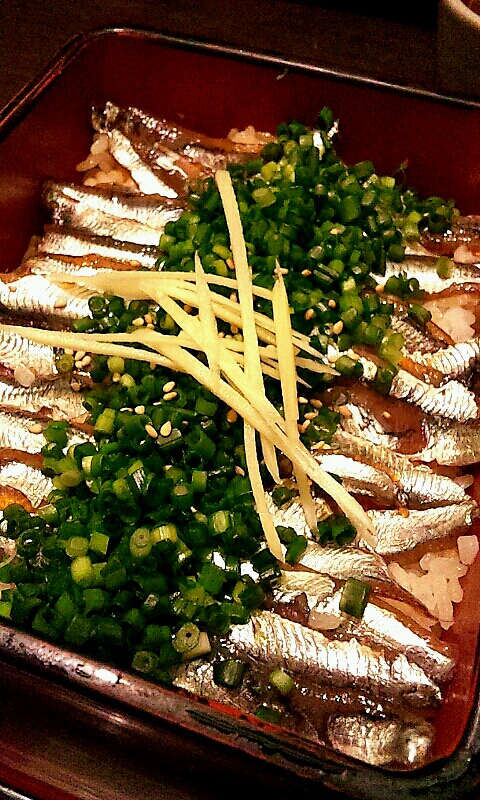 醤油ダレが沁みたご飯と薬味の針生姜に小いわし2匹分くらいを頬張ると、思わず笑顔になること間違いなし。