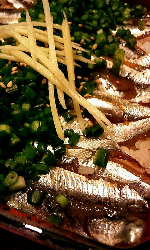ムッチリした小いわしの食感に甘辛い醤油ダレの味に青ネギと青魚の風味が良い感じです。