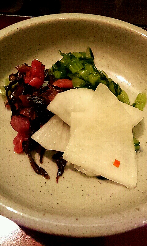 優しい味わいのお吸い物との相性も良い感じで、アッサリしたお新香も良い箸休め。