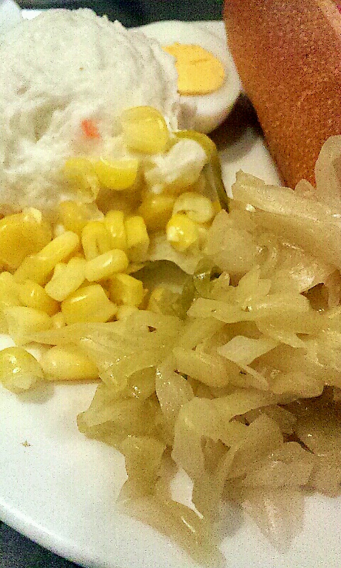 ランチサービスの「ホットドッグ ブランチ」525円に単品の「ザワークラウト」126円をお皿に盛り込んでもらいました。