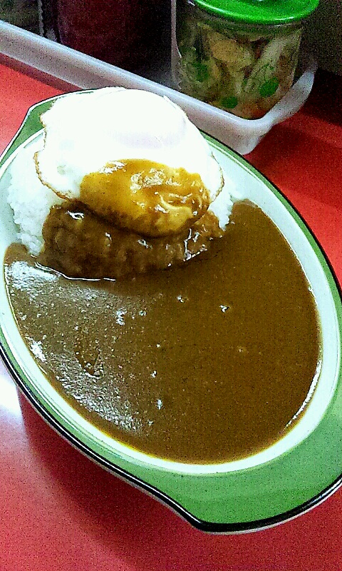 山盛りご飯に被せられた目玉焼きを崩して蕩ける黄身とルーを混ぜながら食べるのが旨いんです。