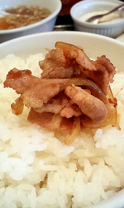 豚肉と玉葱を醤油ダレで炒めたベタな中華屋の味。