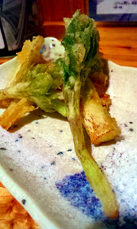 山うどもさんさんの歯応えがいいですね…サクッと揚がった山菜の風味に粗塩がよく合います。