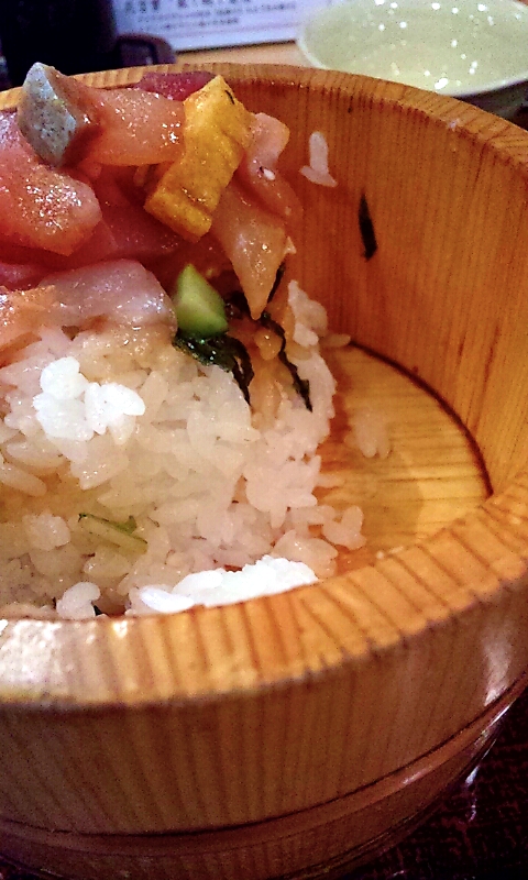 こんな感じで桶にご飯が詰まっていて、具材もたっぷりですから…満腹になるはずですよね…