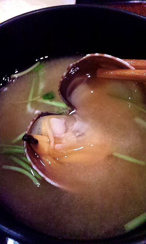 セットの味噌汁も熱々の出汁の効いた旨い味噌汁で、浅蜊にしては大振りな貝が入ってます…最初はハマグリかな…とも思ったのですが殻が浅蜊っぽいので浅蜊かな…