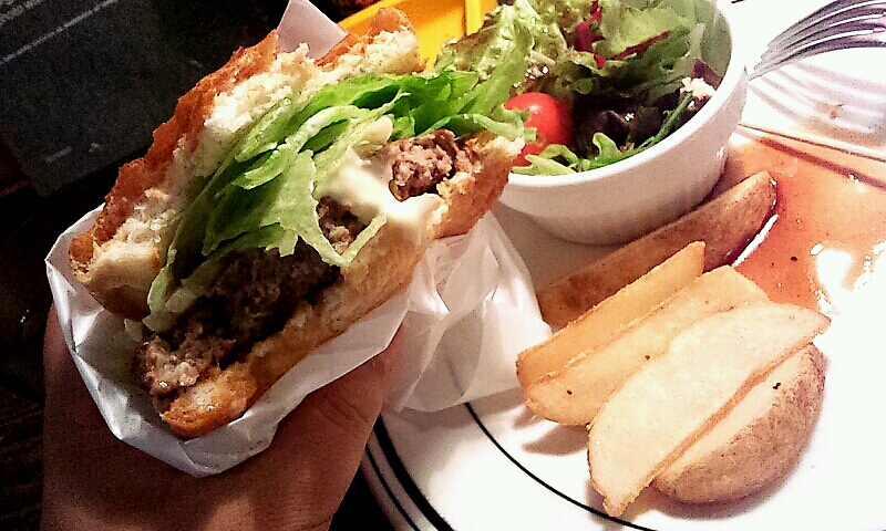 890円とファーストフードに比べると強気な価格設定ですが、ファーストフードチェーンと比べたら失礼なほど、ボリューム感があって、味も旨いバーガーを食べさせてくれます。