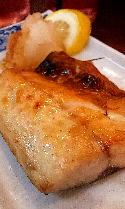 結構長い時間ニンニク醤油に漬け込んでいるようなので、焼き台や魚焼き機ので直火焼いたら、しょっぱくて硬くなって食べられなくなるであろう食材をホイル焼きにすることで素材表面が水分が飛んで塩辛くなったり硬くなるのを防いでいるんでしょう。
