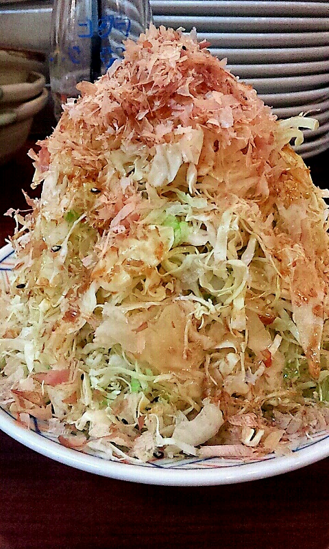 千切りキャベツに削り節をかけ、中華風のドレッシングがかけられたキャベツサラダは小皿に大盛りのボリューム感に圧倒されますが、シャキシャキしたキャベツの食感が良くて、かなりの山盛りですが、意外と簡単に完食できちゃいました。