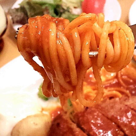 付け合せの中で特筆すべきは、スパゲティで、昔の喫茶店マニアなら涙が出るほど、ベタな昔ながらのケチャップ味のスパゲティで具は何も入ってないけど…なんとなく肉や野菜の風味が…見ているとナポリタンの注文が入った時に、麺だけを別に取り分けていることがあるので…ナポリタンの具の味が付いてるのかな…って感じの旨い付け合せなんです。