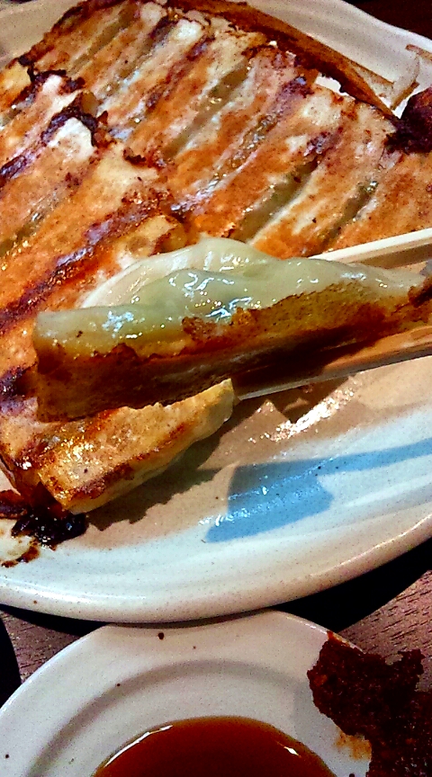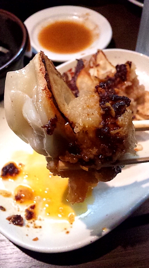 5月25日金曜日は、手持ちの仕事2件のうち1件を終えたことと、椎間板ヘルニアの具合も大分良くなってきたので…今夜は寄り道しちまえ!と荻窪駅西改札北口近くにある、もつ焼き屋の加賀藤さんへ…退社時にもたもたしていたら午後6時半の時点で、加賀藤さんの店内に顔を突っ込んで大将に「空いてる?」と目で訴えかけると、「すみませぇ~ん」という手の合図…「じゃあ、また来ます」と言って向かったのが隣の浪速一口餃子の店「餃々」(チャオチャオ)さん。