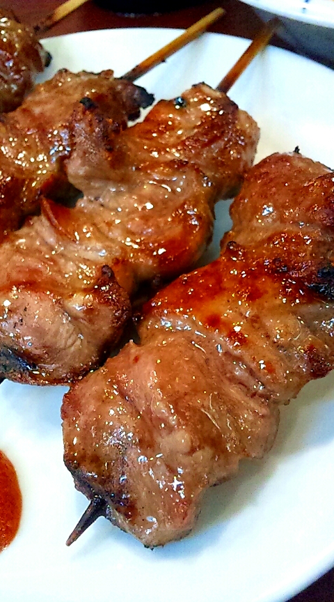 すでに隣のチャオチャオで飲んで食ってきてしまったので…串焼きは定番の「焼肉」2本280円と「カシラ塩」2本280円。