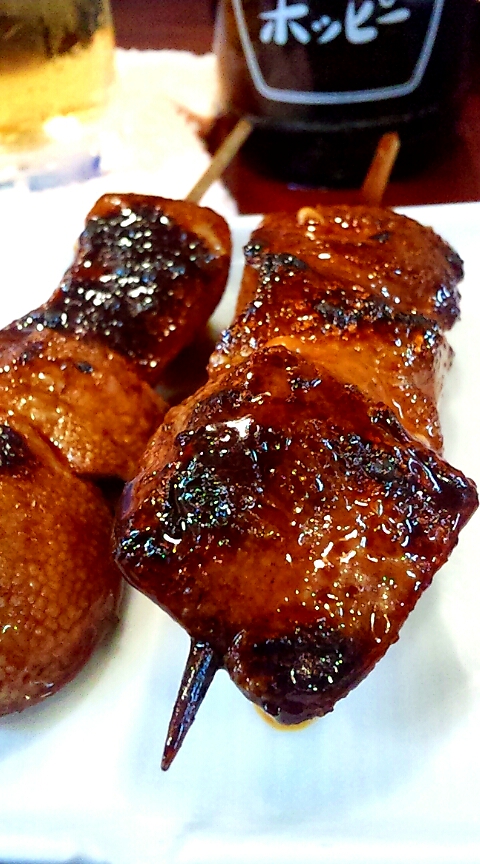 このお店のレバーはタレで焼いて貰うと濃厚な旨味が黒ビールと良く合うんです。