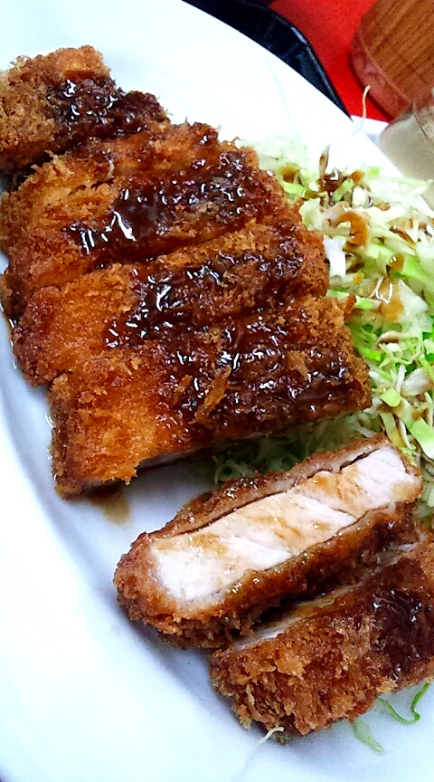 チョット揚げすぎで、衣が凶器になりそうに固いのが難点だけど、ソースや肉汁がしみて馴染んだころには問題なし。
