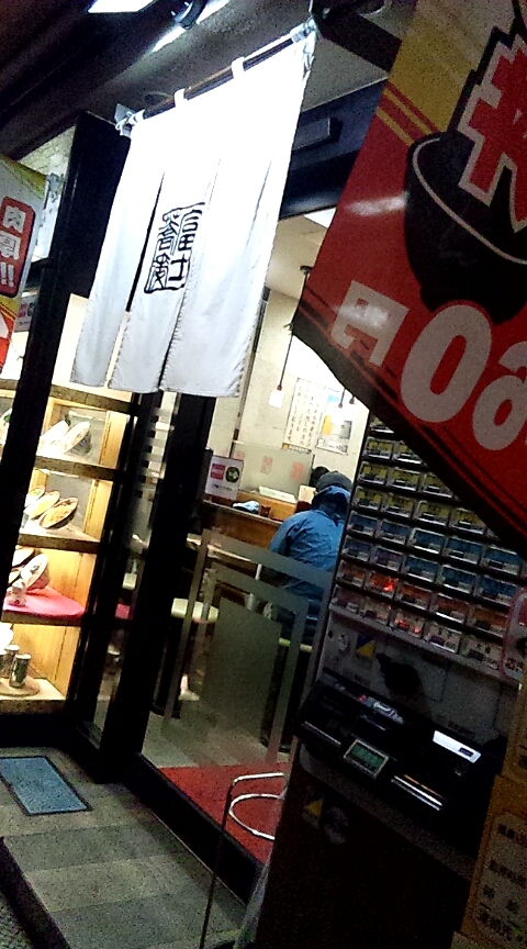 そして、晩飯は、21時過ぎまで残業をして、お気に入りの焼鳥屋「鳥もと本店」さんで軽く飲んだ後、電車の時間を気にして、チェーン店の路麺屋「富士そば荻窪北口店」さんで電車に乗る前に「辛味肉つけそば大盛」490円。