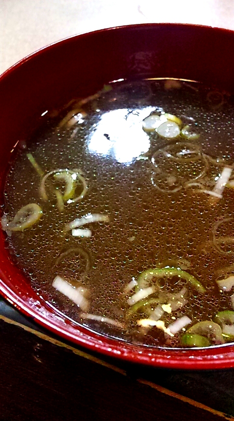チャーハンについてくるスープは、結構脂が浮いてるけど意外と優しい味付けのアッサリ系で薬味の刻みネギタップリがネギ好きには嬉しいです。