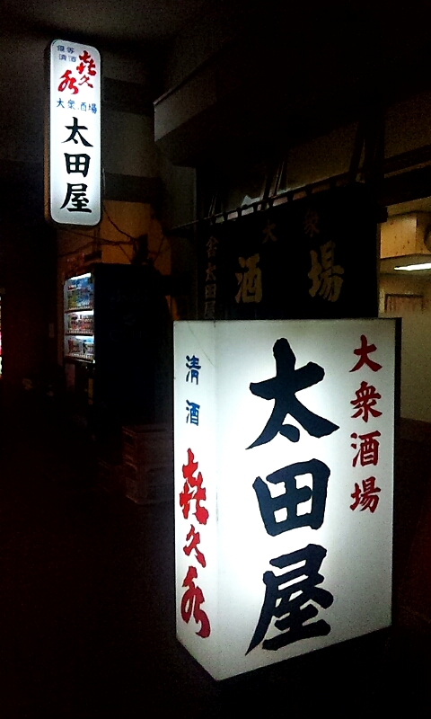 横須賀中央駅を出て、駅前の「Yデッキ」と呼ばれるペデストリアンデッキ渡り、目指すお店は横須賀中央駅前のザ・プライムというビルの裏手の吹き抜けのような通路にある大正2年創業の大衆酒場「太田屋」さん。