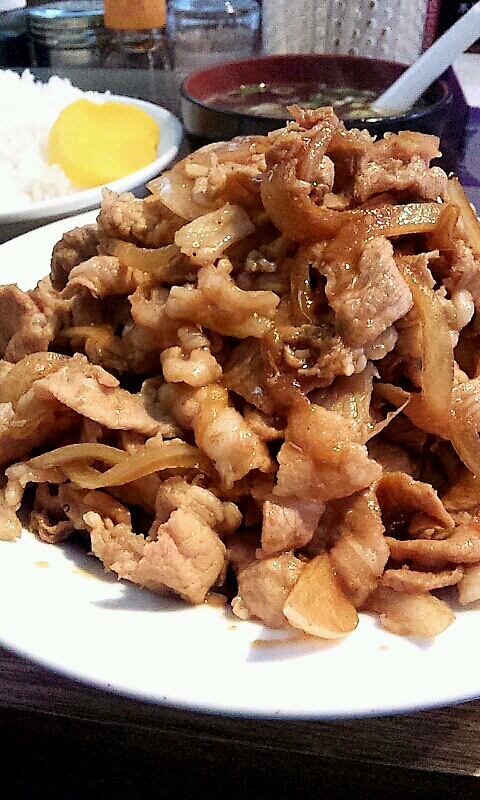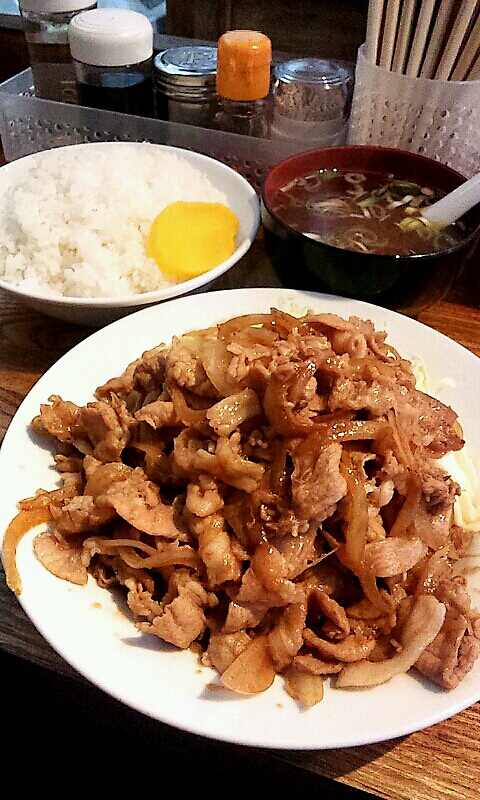 今日の昼飯は、店先の看板に出ていた日替りサービスの「豚肉スタミナ定食」平常価格720円が100円引きの620円に決定。