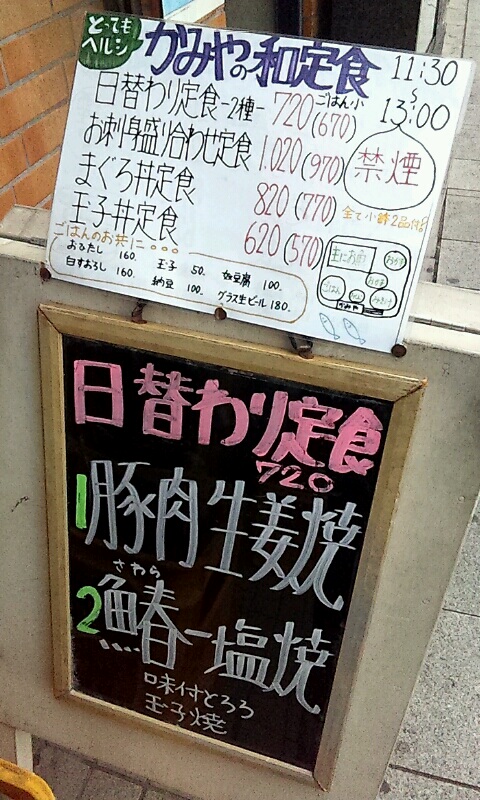 今日の昼飯は、ちょっと足を伸ばして荻窪駅西改札南口の近くにある居酒屋「かみや」さんのランチタイムにお邪魔して来ました。