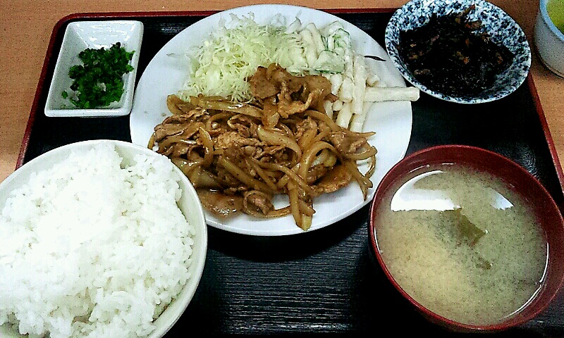 今日の昼飯は、店先の看板に出ていた日替りサービスの「豚肉スタミナ定食」平常価格720円が100円引きの620円に決定。