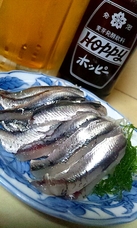 これ、一匹ずつ手開きで捌くの手間がかかっただろうな…って感じの、しこいわしが15匹分くらい小皿に盛られ、いかにも新鮮そうなギンギラギンに輝いてます。
